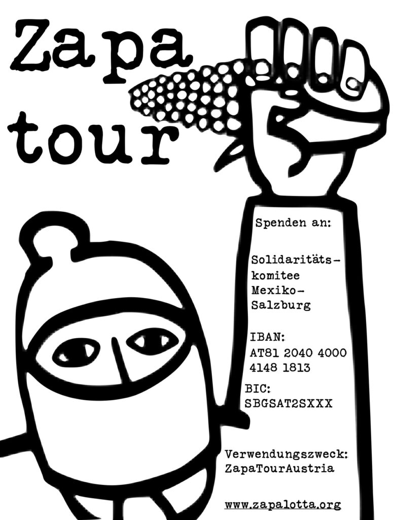 Für eine Zapatistische Delegation in Österreich. Im Sommer dieses Jahres wird eine Delegation von 120 Zapatistas aus Mexiko, die meisten Frauen, begleitet von 40 Vertreter*innen des Indigenen Nationalkongresses und indigener Umweltorganisationen, Europa zu bereisen.