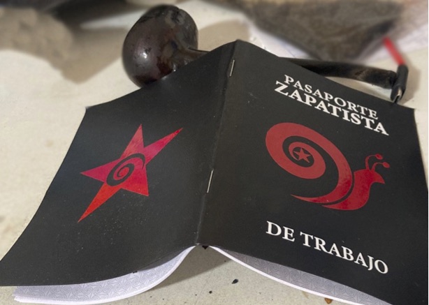 Erlauben Sie mir, dass ich Ihnen von der zapatistischen Dokumentation erzähle, welche das Geschwader 421 (welches zu diesem Zeitpunkt bereits ´maritim´ zu seinen schillernden Namen hinzufügen könnte) bei sich trägt. Die compañer@s haben einen zapatistischen Pass. Das heißt, zusätzlich zum offiziellen mexikanischen Reisepass haben sie den ´Zapatistischen Arbeitspass´ bei sich. Hier die Beschreibung:
